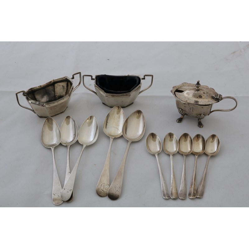Silver Spoons, Salt Dishes and Mustard, 9ozt
