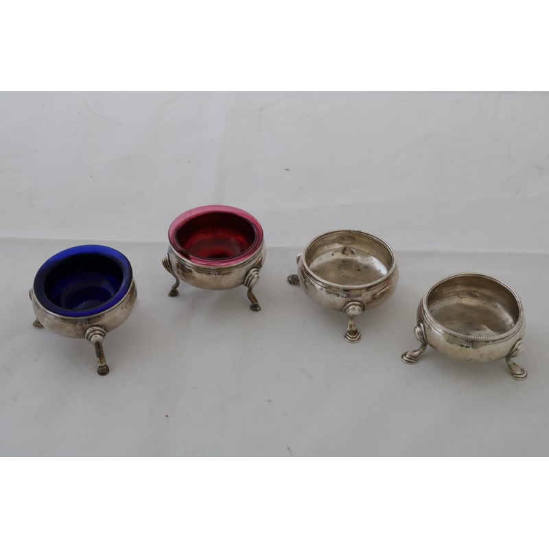 Two Pairs of George III Silver Salts (two glass liners), 5.3 ozt