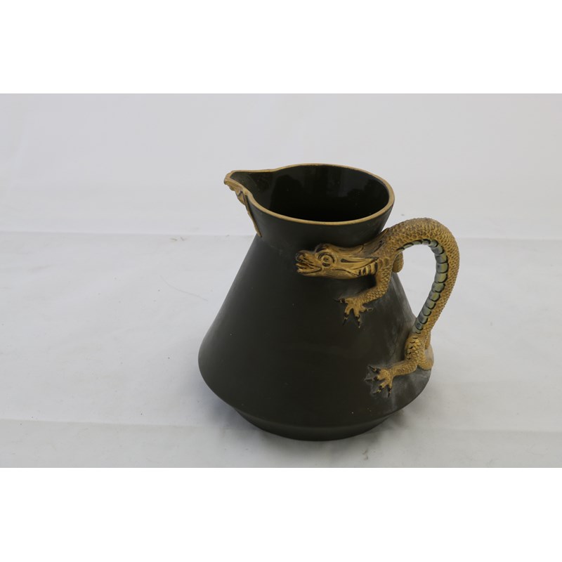 Victorian Basalt Style Jug with Gilt Lizard Handle and Bat Spout