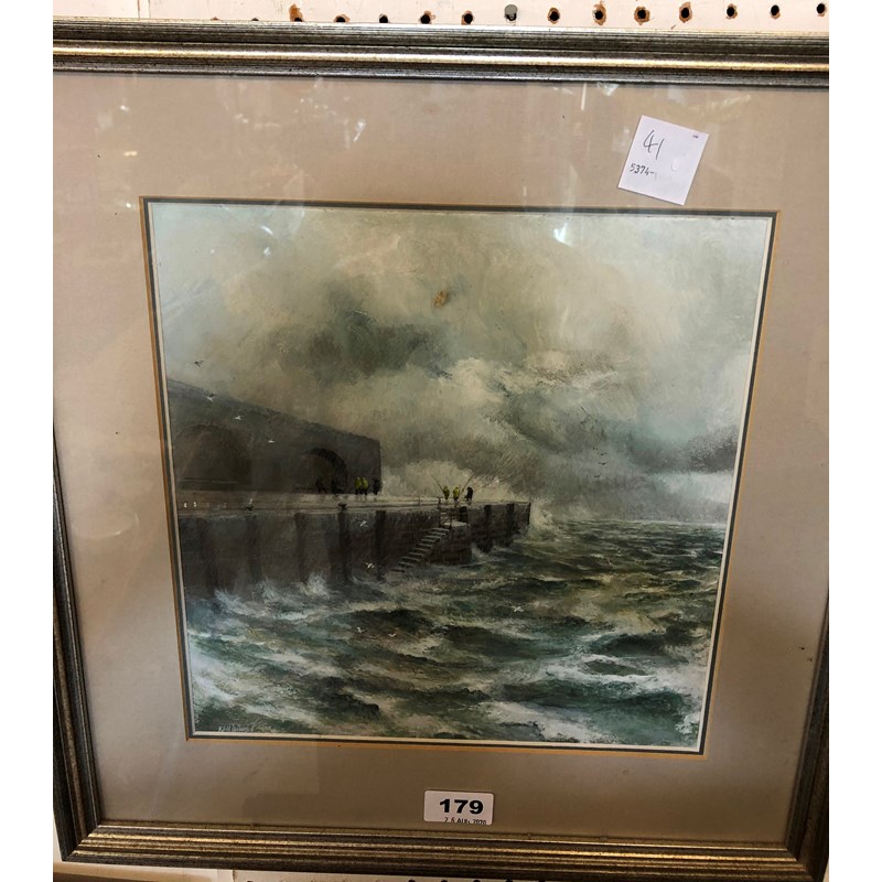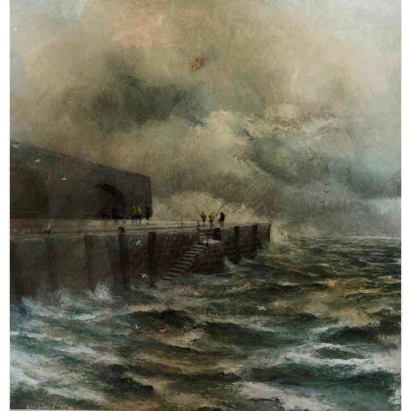 Ken Turner, Fishermen on a Jetty, Watercolour