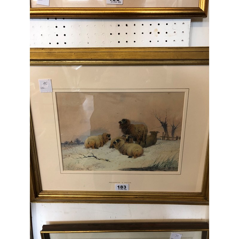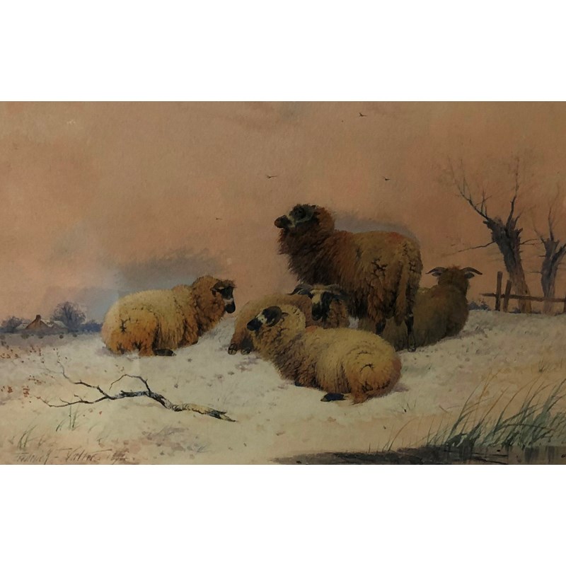 Frederick E Valter, Sheep in the Snow, Watercolour
