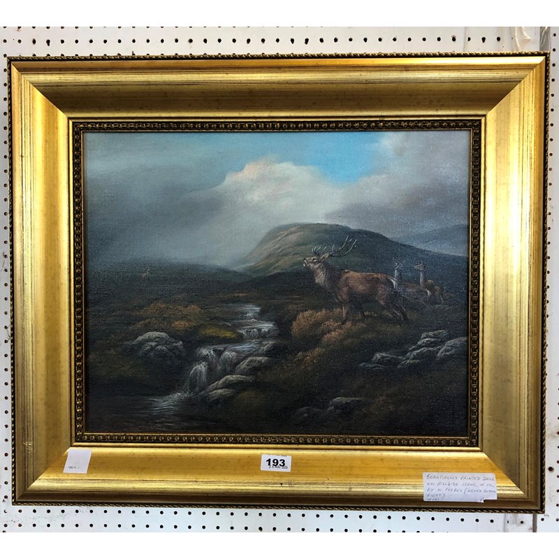 W. Forbes, Oil on Canvas, Stags on the Moor
