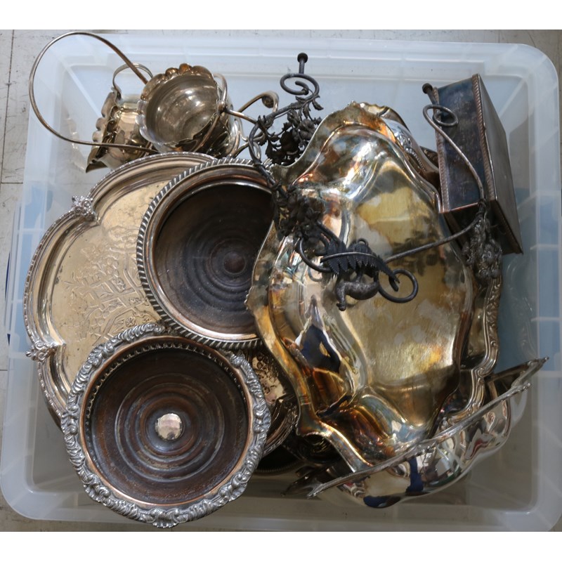Box of Silver Plate including Coasters, Entree Dishes, etc