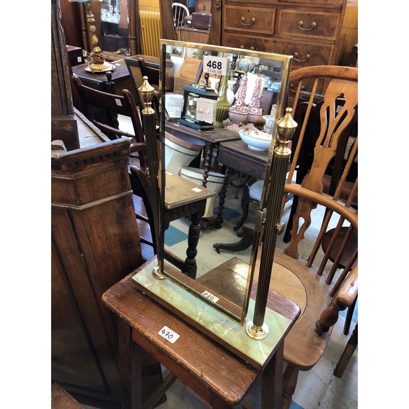 Brass Swing Mirror on Faux Onyx Base, labelled Peerage