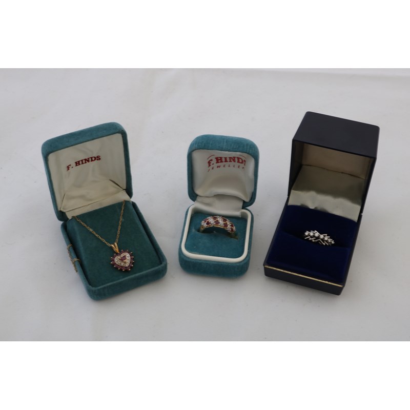 Gold Ring (3g), Necklace (2g) and Another 18ct White Gold Ring (3g)