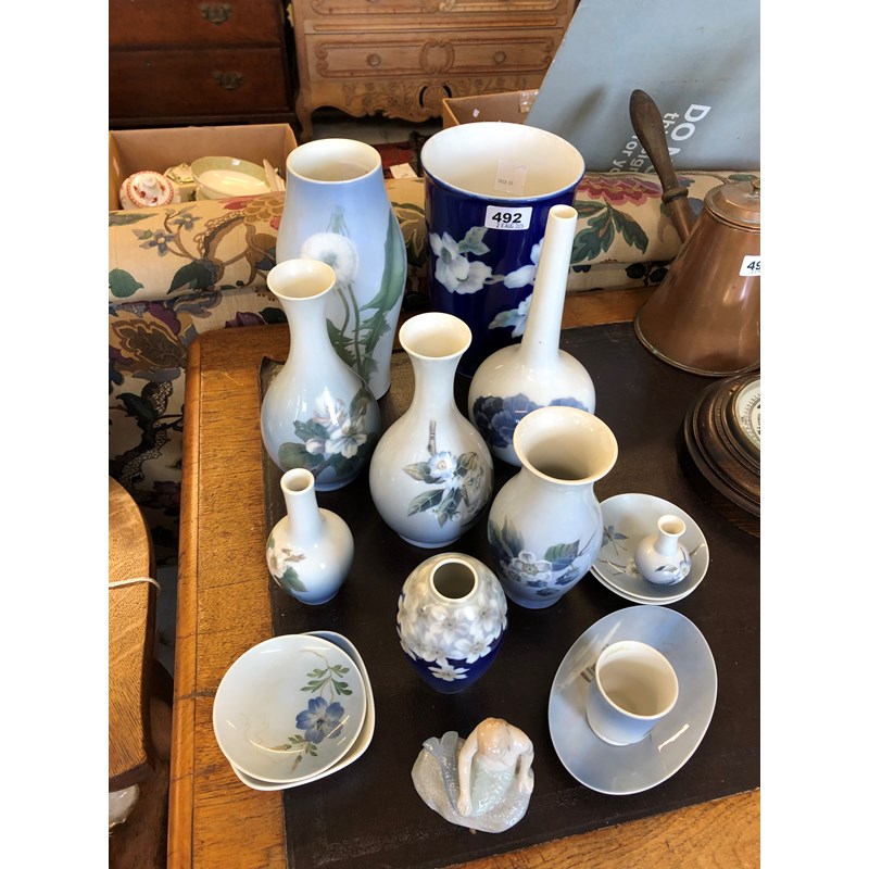 Eight Royal Copenhagen Vases and Other Copenhagen Items
