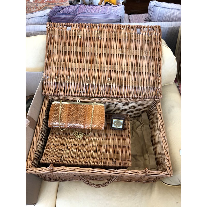 Mixed Lot to inclue Two Wicker Baskets, Purse and Clock