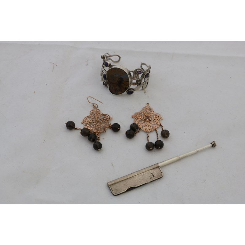 Pair of 9ct Gold Earrings, Silver Penknife with Retractable Pencil by Asprey & Co and Silver 925 Bracelet