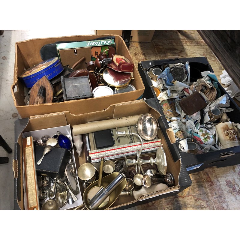 Three Boxes of Woodware, Metalware and Collectables