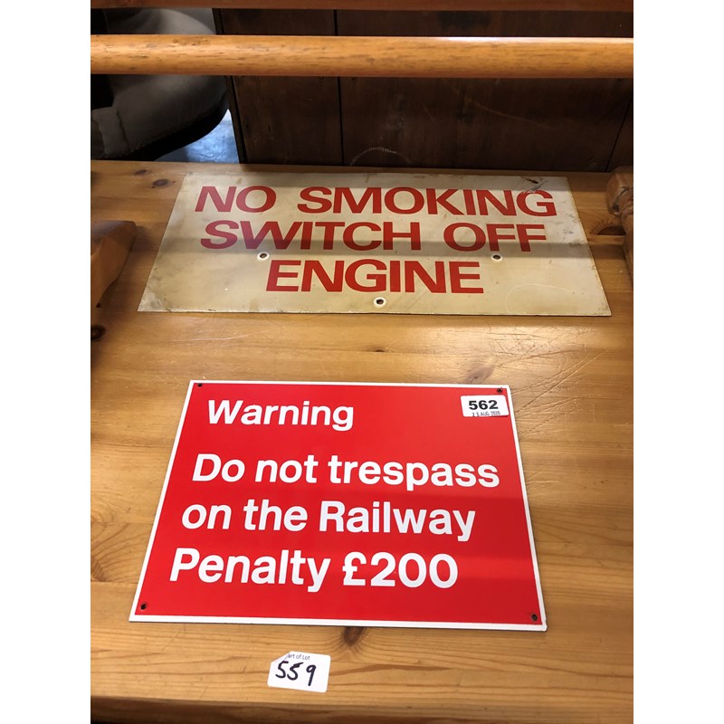 No Smoking Enamel Forecourt Sign and a Railway Sign
