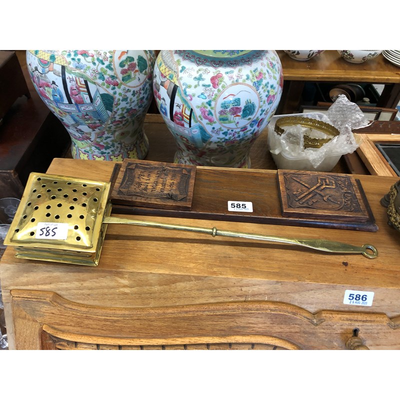 Brass Chestnut Roaster and Oak Bookends - Winchester Cathedral Interest
