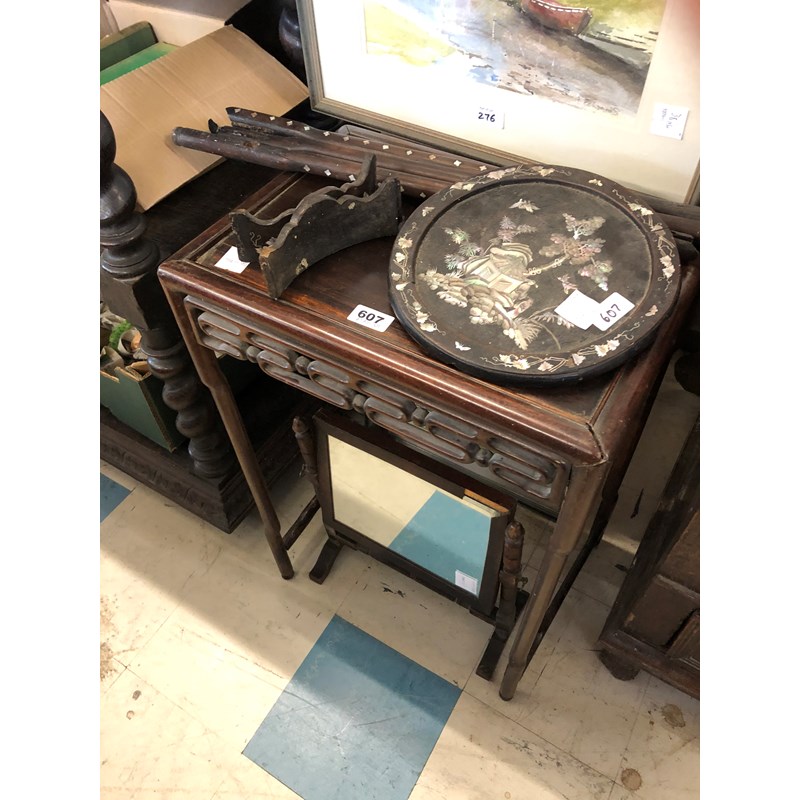 Chinese Table, another Table (A/F) and Sewing Mirror