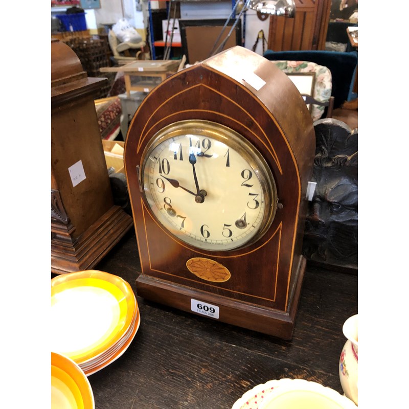 Edwardian Inlaid Lancet Shaped Mantle Clock