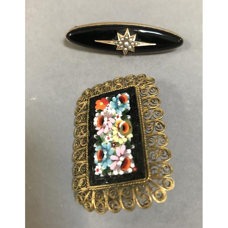 Victorian Mourning Broch And Micro Mosiac Brooch