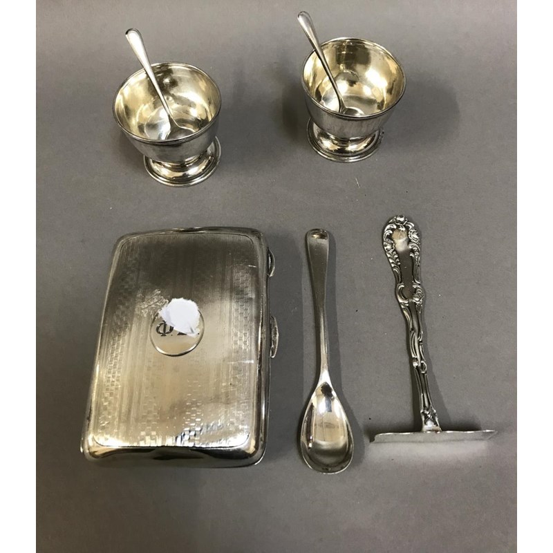 Silver Card Case, Silver Egg Cups and Other Small Silver