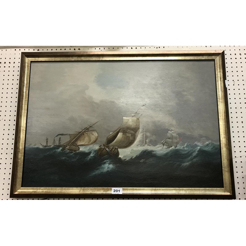 19th/20th Century British School, Shipping Off a Lighthouse, o/b