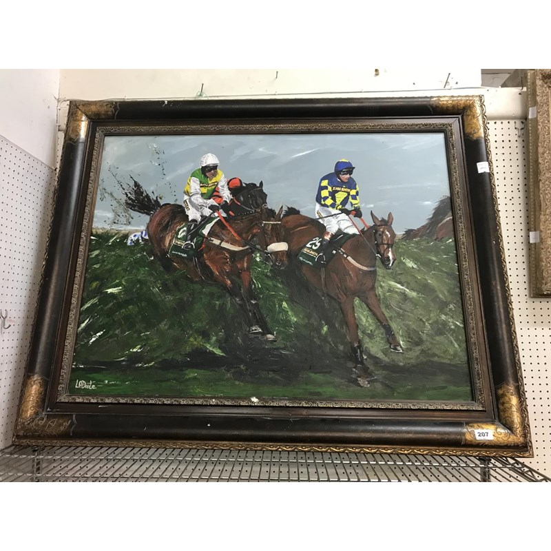 Lesley-Anne Poole, Horse Race, Oil on Canvas Board
