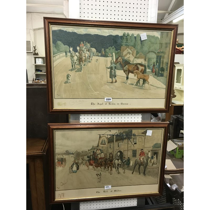Two Signed Cecil Aldin Prints of 'The Bell at Stilton' and 'The Angel at Henley', 1903