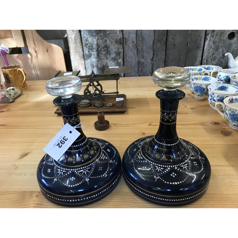 Pair of Blue Glass Decanters