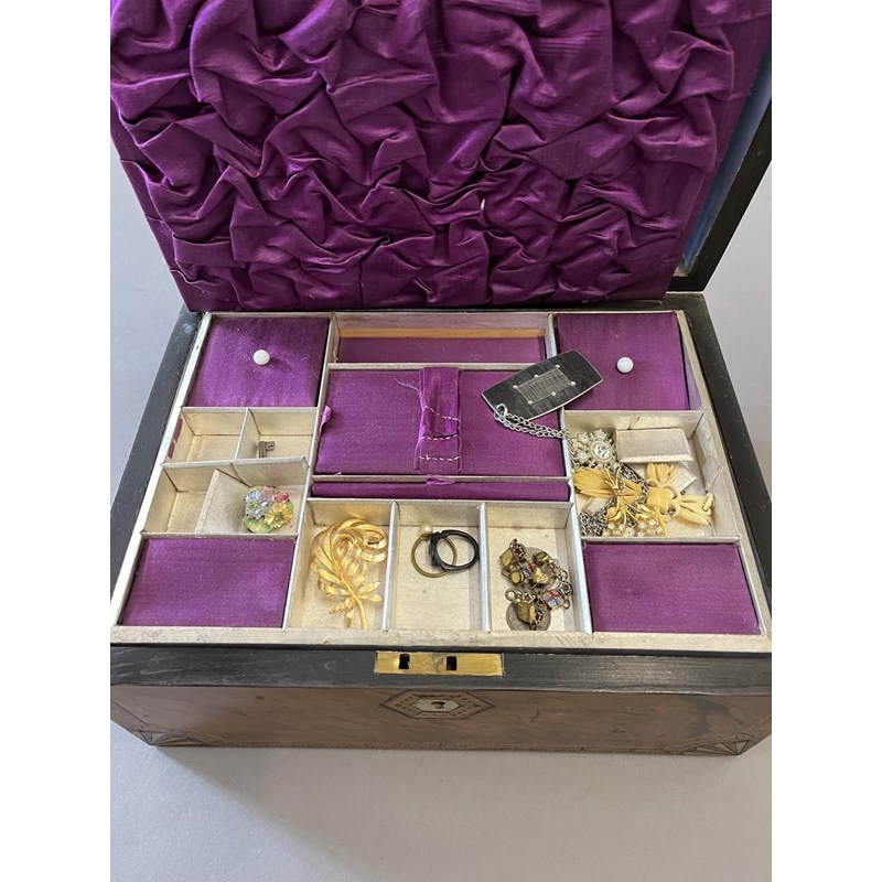Mahogany Inlaid Jewellery Boxes and Contents A/F