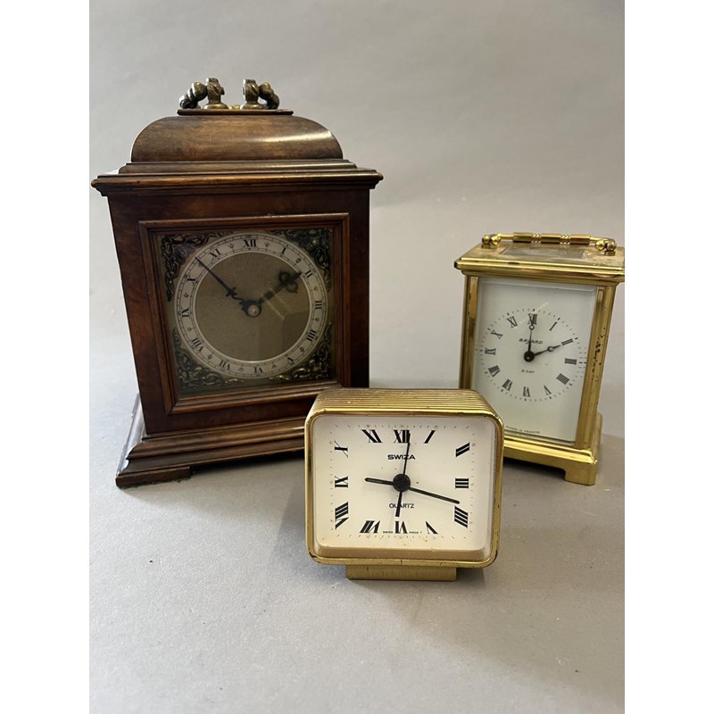 Brass Carriage Clock, Bayard 8 Day and a Swiza Clock, Walnut Mantle Clock