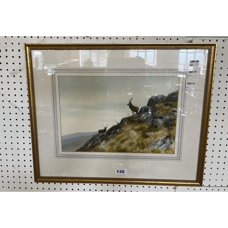 Rodger McPhail, Stags on a Rocky Outcrop, Watercolour