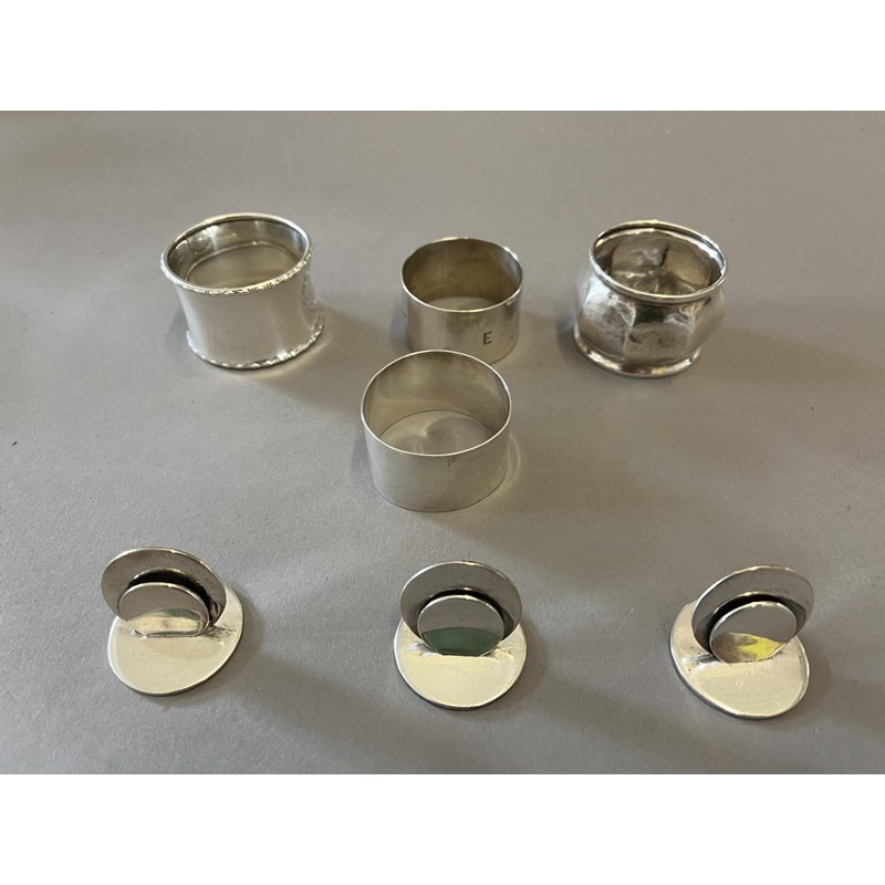 Four Silver Napkin Rings and Three Silver Menu Holders