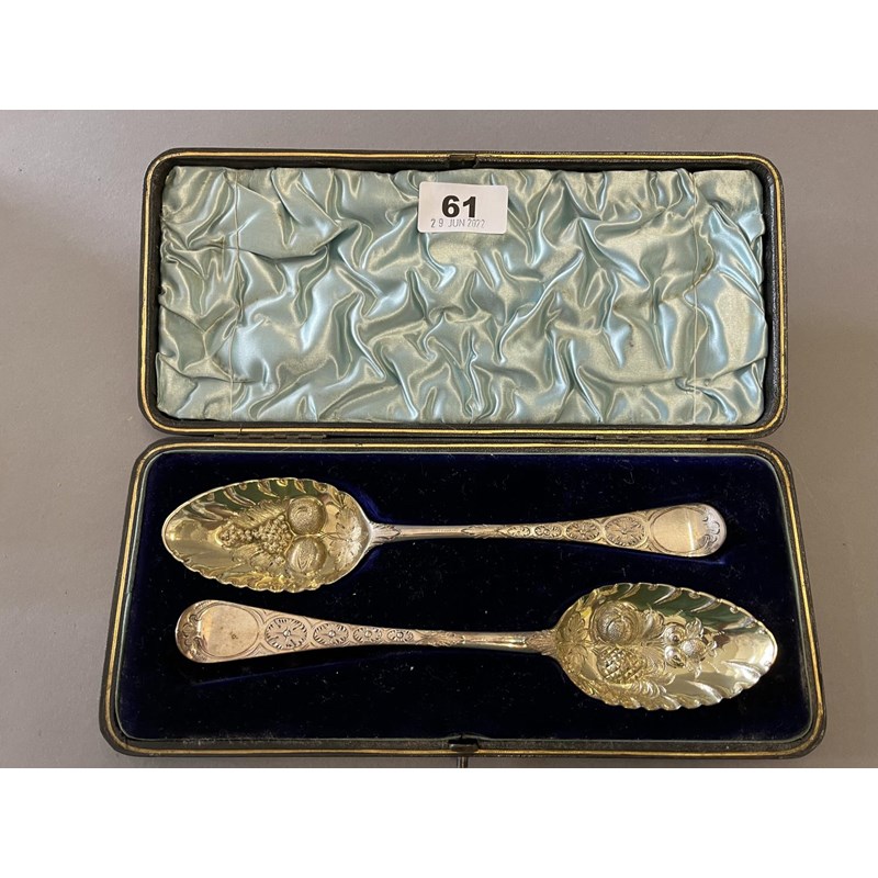 Cased Pair of Silver Berry Spoons