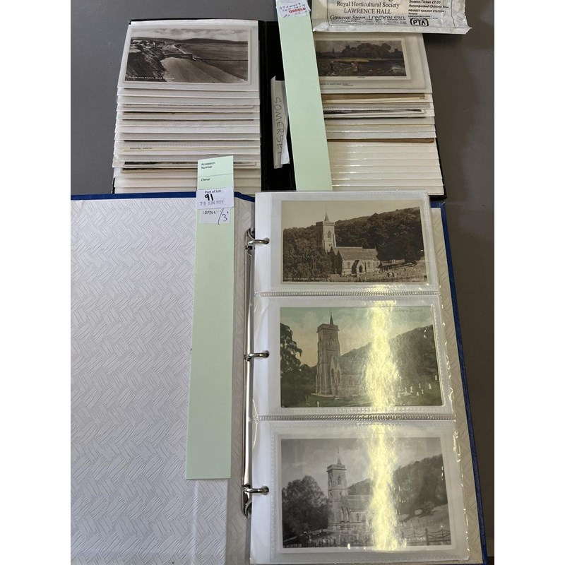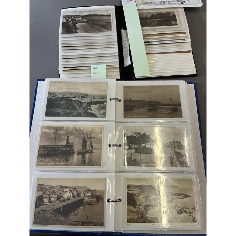 3 albums of postcards including Churches (St Audrie's near Watchet), Saint Audries House, West Somerset Foxhounds St Audries, St Audries Bay, East Quantockshead, Williton, Watchet (Swain St, Market St, West Pier, Harbour etc), The Quantocks, Blue Anchor, Staghounds Dunster, Porlock, Taunton (East St, The Parade on Market Day, Market House) and other cards. (2)