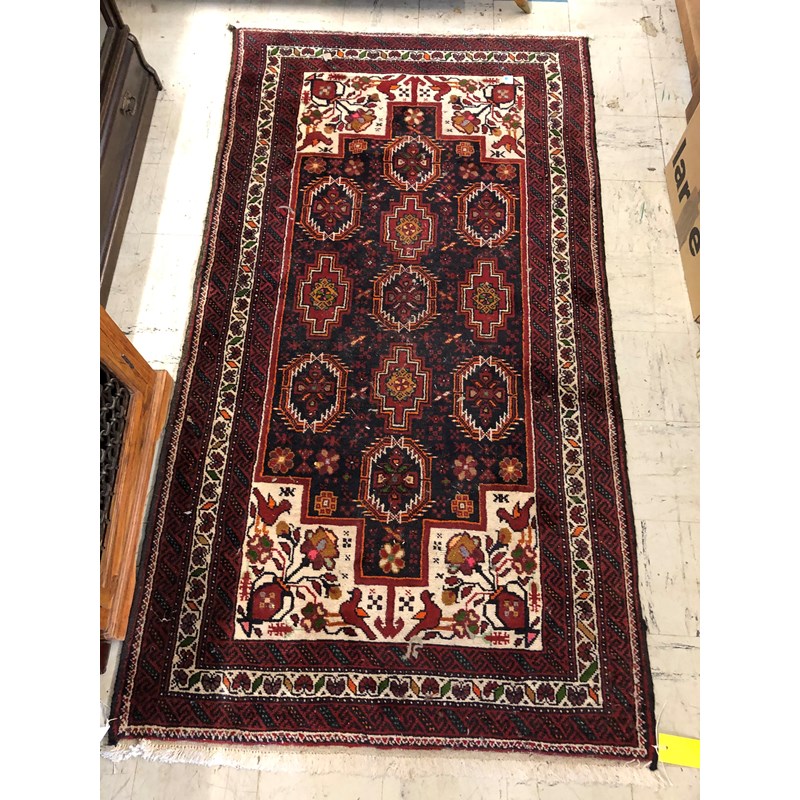 Persian Rug with Stylized Birds and Flowers together with a Balouch Rug and Assorted Cushions