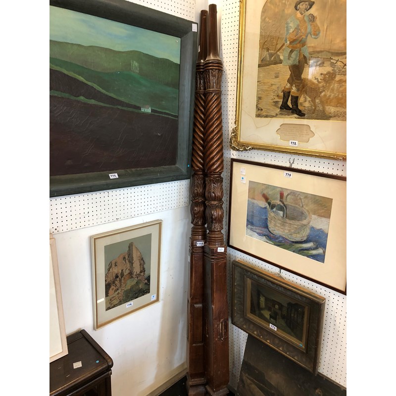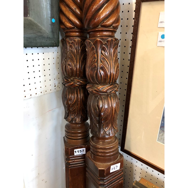 Pair of 19thC Carved Mahogany Bed Posts (2)