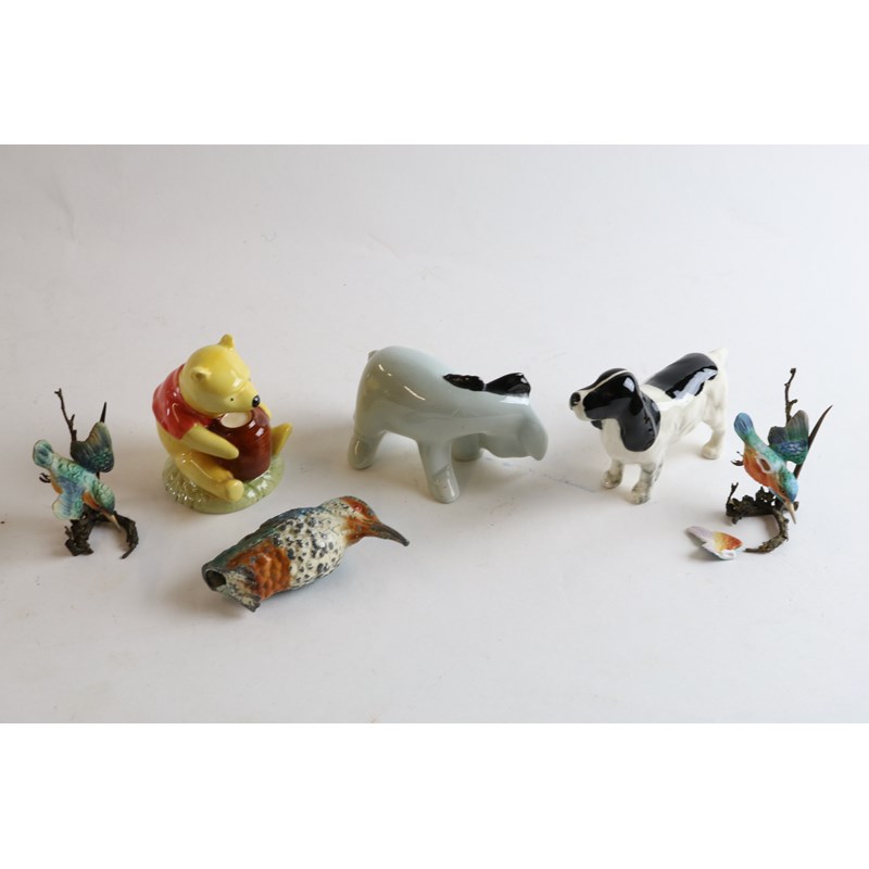 Mixed Lot to include Beswick Spaniel, Doulton Winnie the Pooh, Painted Metal Kingfishers, etc