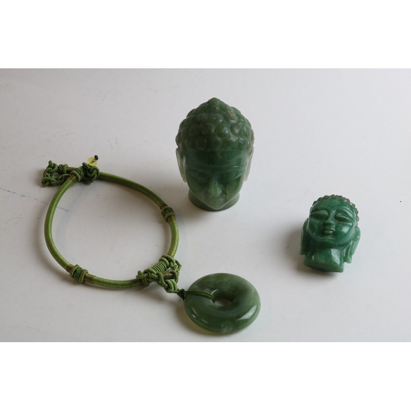 Two Chinese Jade Heads together with a Circular Jade Pendant