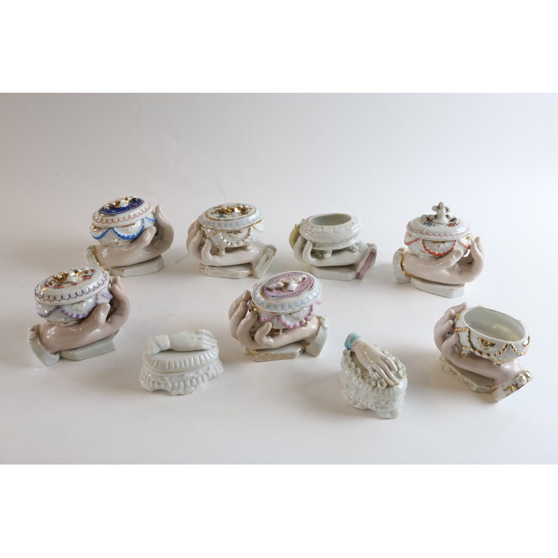 Nine Assorted Porcelain Caskets and Covers of Hand Form