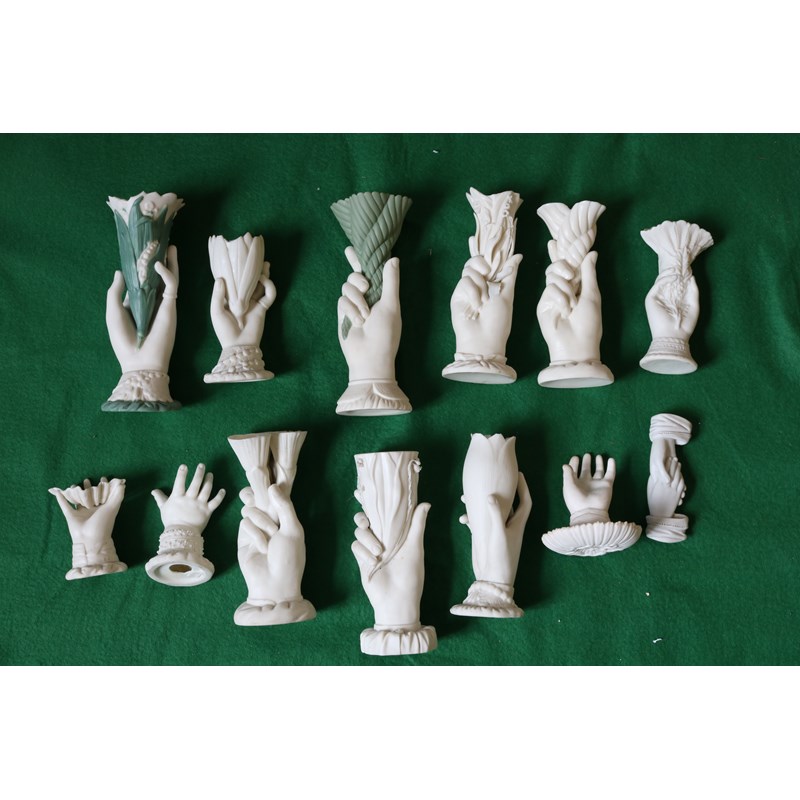 Thirteen 19th/20th Century Parian Ware Hand Form Vases