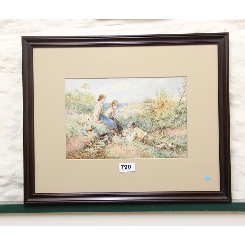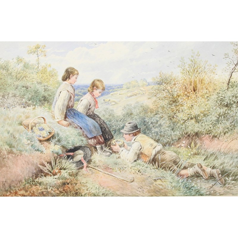 After Myles Birket Foster, Watercolour, `The Bird's Nest`
