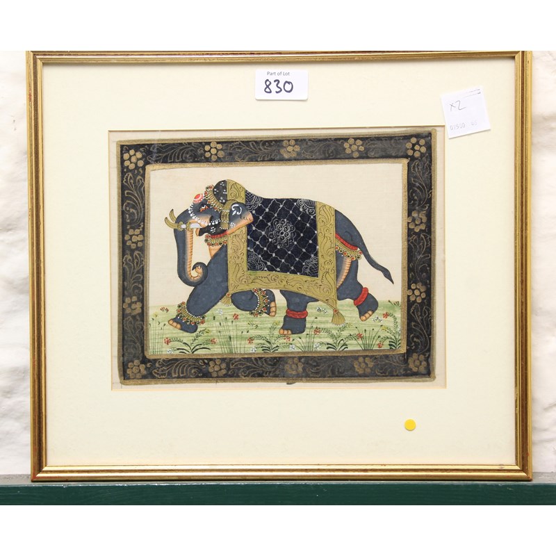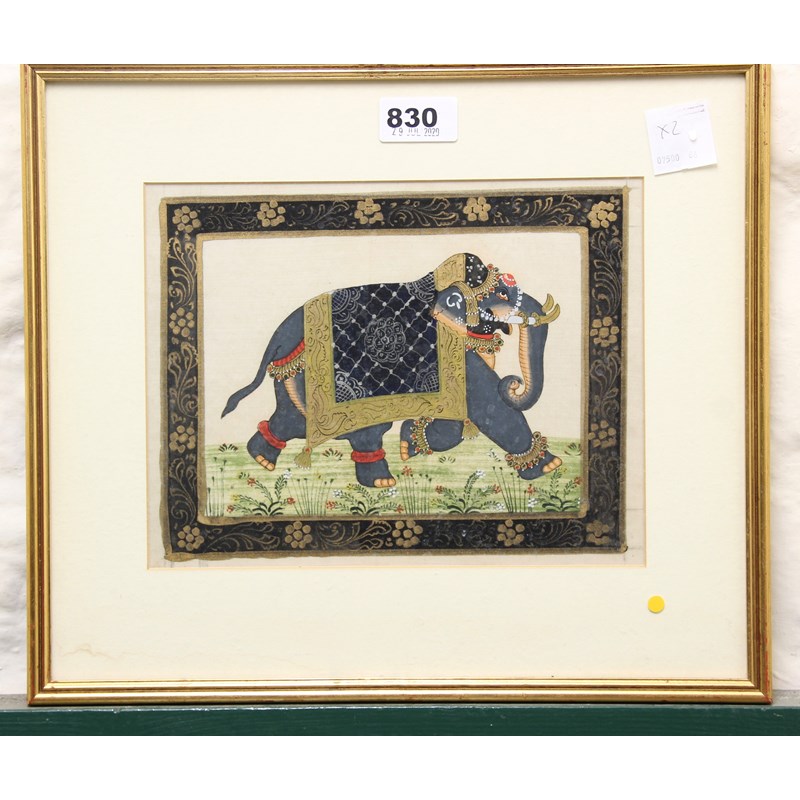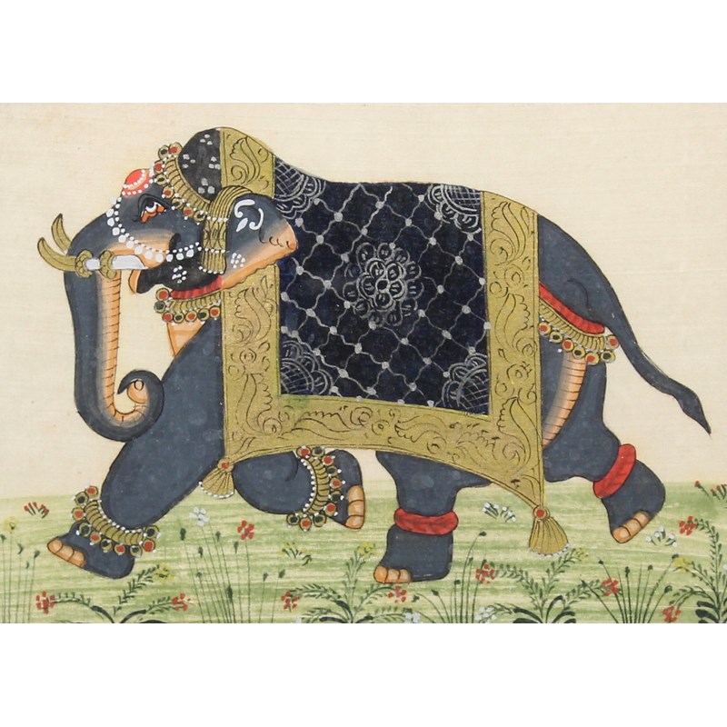 Pair of Indian Silk Paintings of Elephants, 20th Century