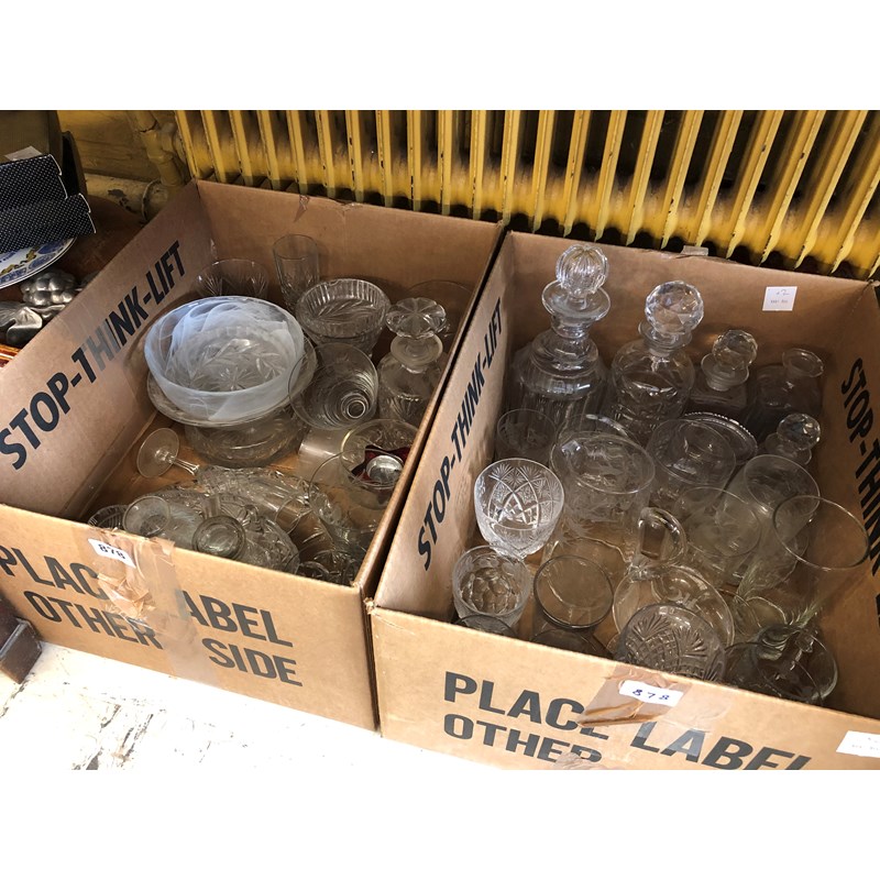 Two Boxes of Glass including Decanters, Jugs, Vases, etc