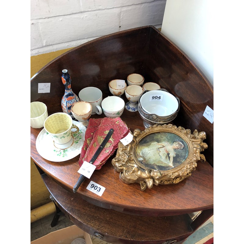 Mixed Lot of Porcelain and Collectables including Belleek, Japanese Imari, Miniature Pictures, etc
