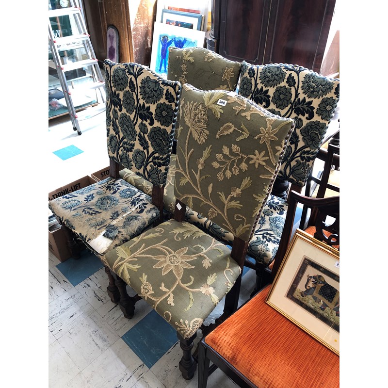 Set of Four Upholstered Oak Dining Chairs on Block and Turned Supports