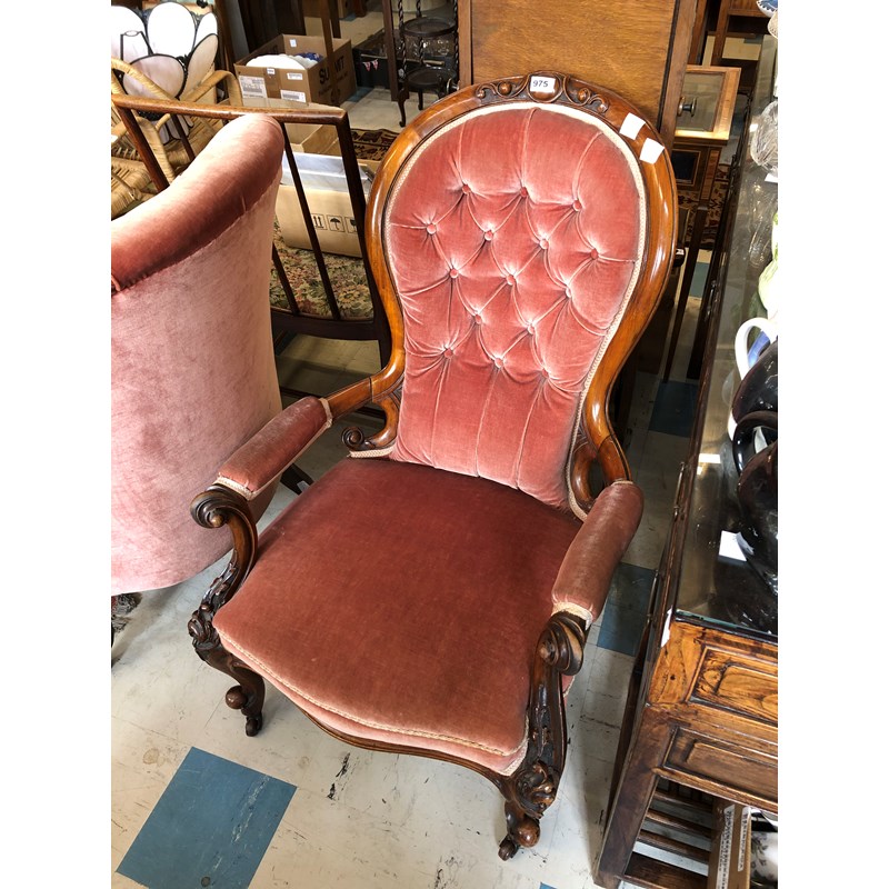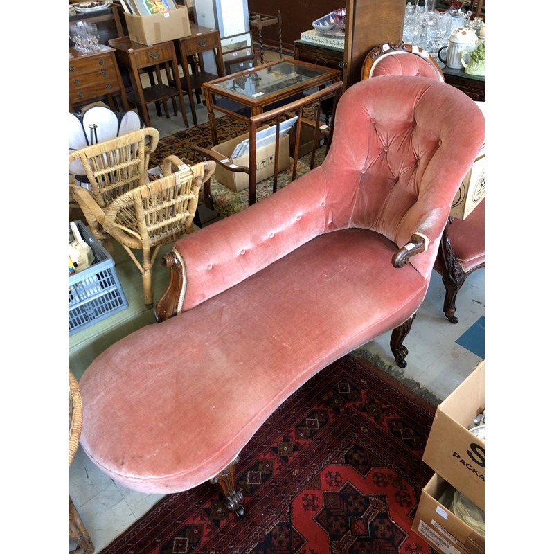 Victorian Upholstered Button Back Armchair together with a Chaise Longue in a similar style