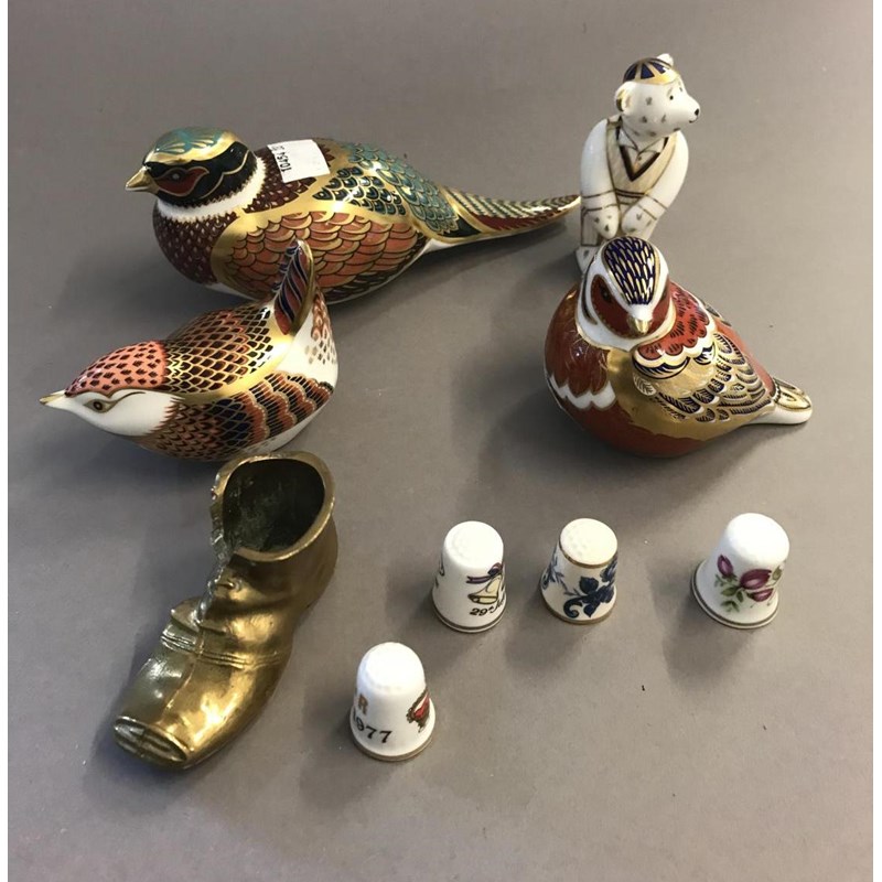 Quantity of Crown Derby Birds, Crown Derby Figure, Thimbles, etc