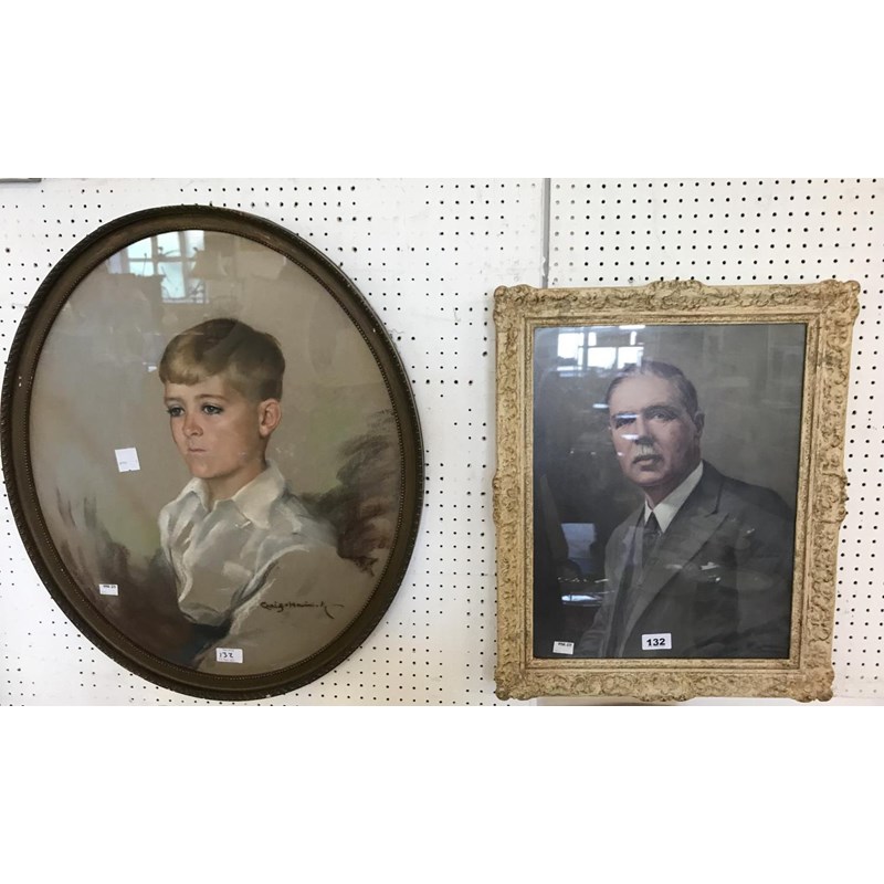Pastel Portrait of a Boy by Craig-Harrington (?); And a Portrait Print of a Gentleman