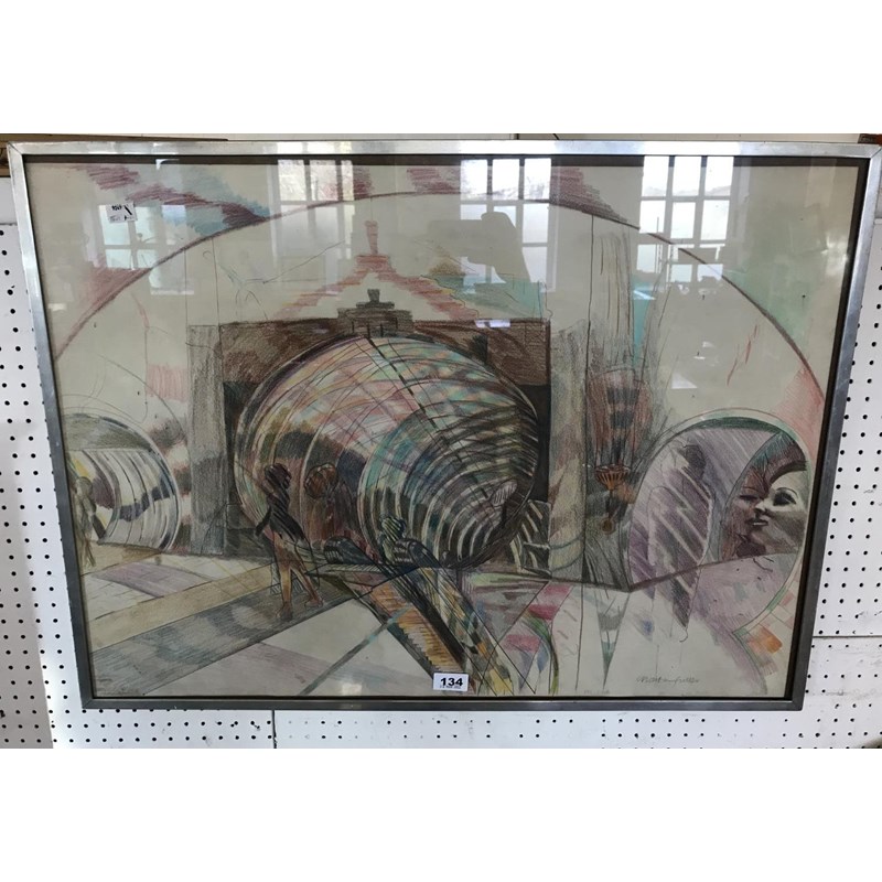 Martin Fuller, The London Tube c.1970, Signed Crayon Drawing