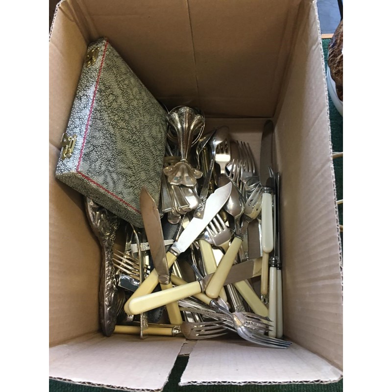 Box of Silver Platedware, Various Cutlery etc