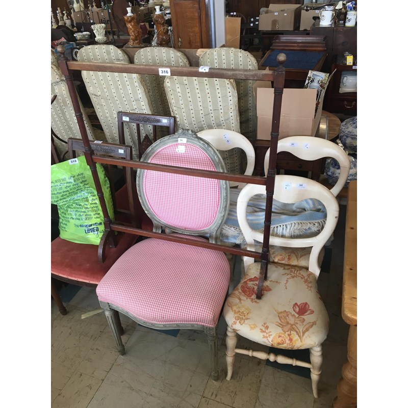 French Style Bedroom Chairs, Rug, Towel Rail and Three Painted Chairs