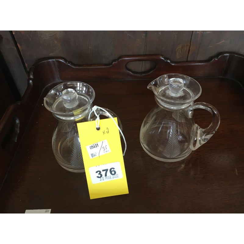 Pair of Etched Glass Whiskey Flasks