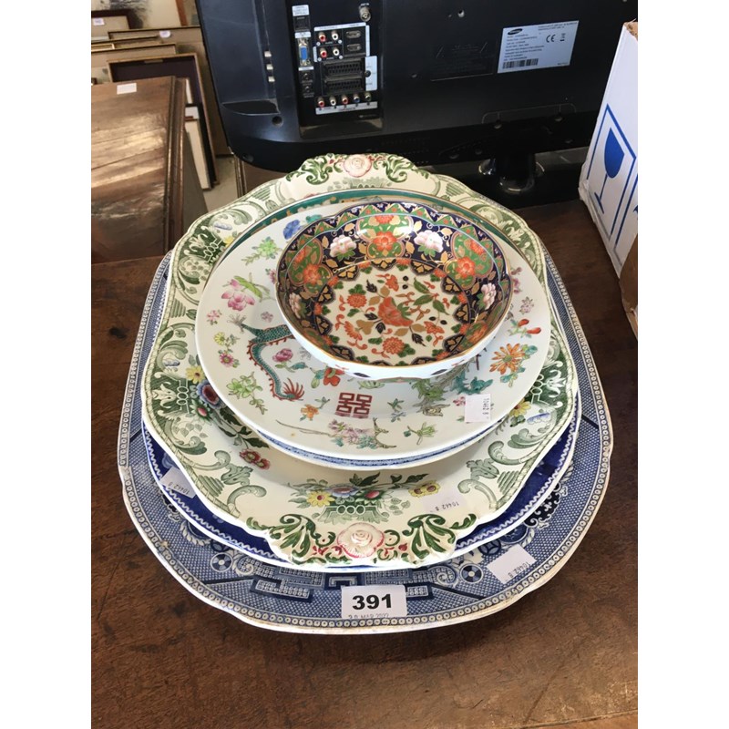 Three Meat Plates to Include Blue and White, Spode Plate, Oriental China etc