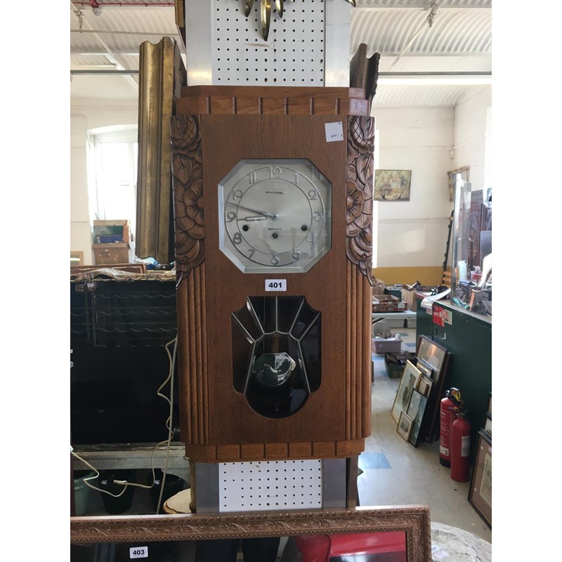 Light Oak, Art Deco Style Wall Clock