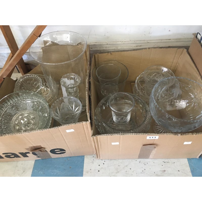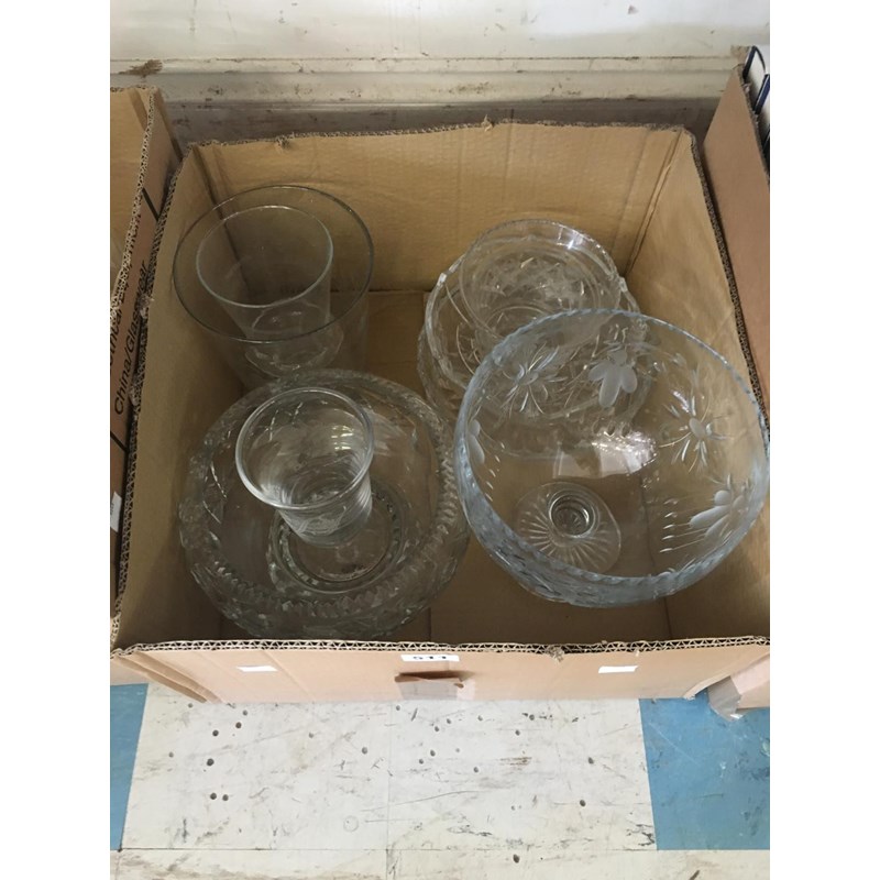 Two Boxes of Assorted Glassware to include Various Bowls, Vases, etc